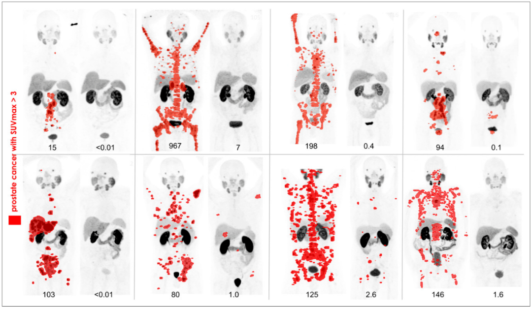 图2:SNMMI 2018年度最佳图像: 177 Lu-PSMA617治疗转移性前列腺癌前后的 68 Ga-PSMA11 PET显像
