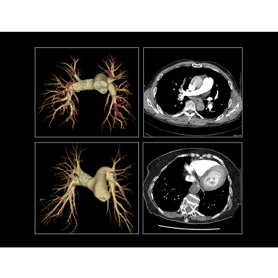 作为肺栓塞确诊检查的首选,现阶段的CT肺动脉造影(CTPA)诊断存在痛点:传统的肺栓塞阳性分诊和鉴别诊断十分低效,难以满足急性胸痛诊疗中争分夺秒的需求;由于肺动静脉的容积效应重叠,易将肺门和段间淋巴结误认为栓塞,且一些微小的栓塞也容易被忽视;此外,胶片打印需要前往工作站做手动重建、排列胶片归档打印,费时费力,这均不利于患者获得及时诊治。