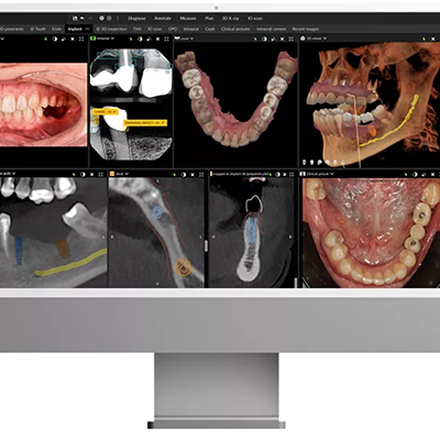 Automatically consolidate all your data (2D, 3D, intraoral scans, and photography) into an AI-powered patient workspace. Create diagnoses, educate patients, plan treatments, and generate surgical guides—all with the help of AI.