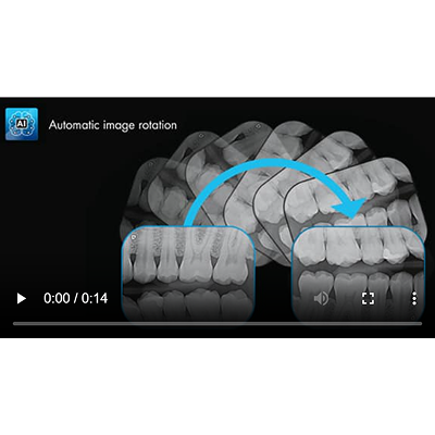 The imaging software uses an algorithm based on artificial intelligence to check the orientation of intraoral X-ray images with the aid of anatomical features shown and corrects the rotation of the image automatically if needed. This will save you valuable time.
