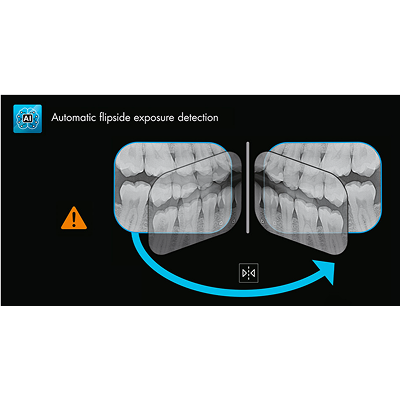 VistaSoft AI automatically detects if the wrong side of the image plate has been exposed, and issues a corresponding warning for the user.