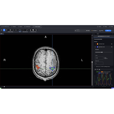 Automatic motion correction and coregistration ensure confidence in your results. nordicMEDiVA provides you with tools for quality control, such as motion correction graphs and fMRI intensity curves overlayed on a paradigm. Coregistration is triggered when loading maps and performed automatically with the option for manual correction.