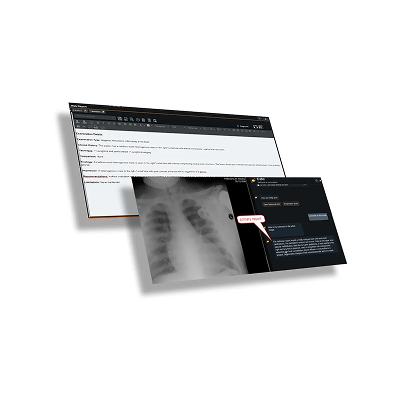 AI radiology report generation capabilities include: Pre-prepared Auto-generated AI primary report, AI full Report generation consuming dictated findings an existing doctor template, AI transcription and report rephrasing.