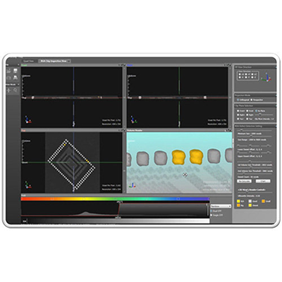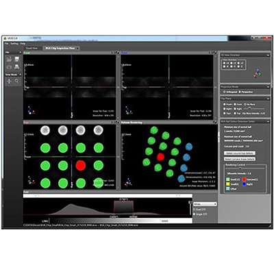 VXEI is an electronic chip inspection module based on 3D CT X-ray imaging data, which can act as VX3D's add-on module or as stand-alone software. Based on the ball shape, location, and volume information, VXEI is able to detect defects, including open solder joints, solder bridges, and abnormal solder balls (big, small, or head-in-pillow shapes).