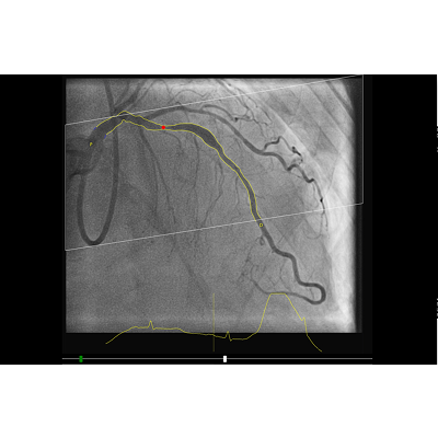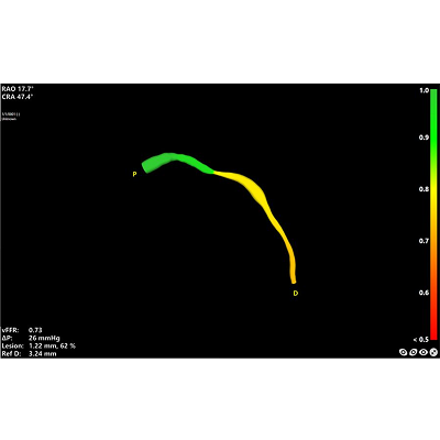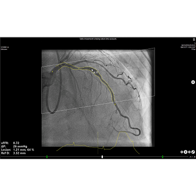 The vFFR workflow builds a 3D reconstruction of coronary artery and assesses pressuredrop, resulting in a vFFR value. Furthermore, with the 3D reconstruction anatomicalesion information is provided, like the percentage stenosis.
