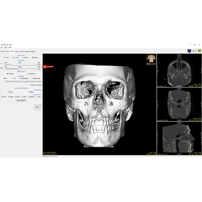 The Segment tab in the HNA app is used to efficiently define the three most important regions of interest in head and neck analysis scans: soft tissue, bone, and airway. Once defined, the segmented objects are used to generate various renderings from a single scan or from pre and post interventions scans which can be combined to show changes that have taken place over time.