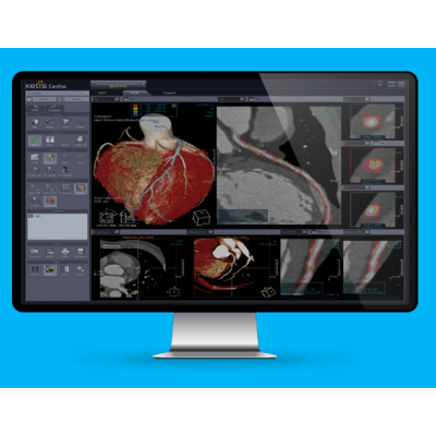 Xelis" Cardiac provides easy and powerful 2D and 3D display and analysistools for evaluating coronary CT angiography. lt delivers extensive volumetricstudies with comprehensive image analysis, soft plaque analysis, andmeasurement tools for effective and accurate diagnoses and convenientsurgical planning.
