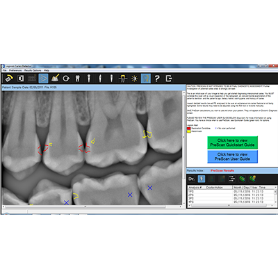 Results can be produced automatically by PreScan on bitewings and manually by the dentist on both bitewings and PA radiographic images.