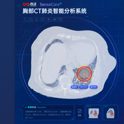 SenseCare®胸部CT肺炎智能分析系统能够一站式自动检测肺炎病灶并提供定性定量分析,同时支持智能精准随访、结构化报告生成等功能,有效辅助肺炎筛查及高效随访。