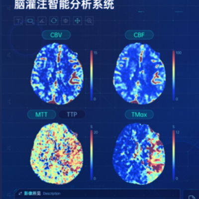 全自动计算颅内血流灌注参数,输出CBV、CBF、MTT、TTP、Tmax等参数动态视图