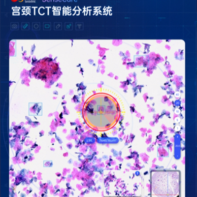 SenseCare®宫颈TCT智能分析系统可通过异常细胞检测、细胞分类等算法,对超大规模数字病理图像进行切片阴阳性智能分类,同时自动识别多种病变细胞,大幅提高TCT检查的准确性,提升病理科阅片效率,赋能宫颈癌早癌筛查。