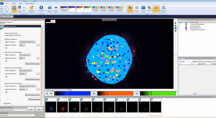 Quickly create multi-step routines with the Custom ModuleEditor. lt enables advanced analyses such as identifyingobjects within objects, and creating morphometricclassifiers for shape analysis,